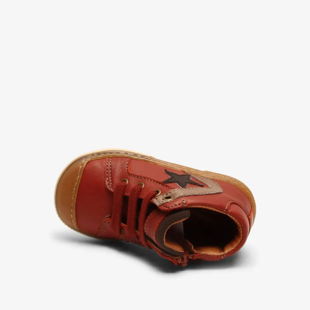 Les baskets Bisgaard Holger Cotto en rouge, faites main avec des matériaux naturels, offrent un design danois intemporel et une souplesse idéale pour les petits pieds.