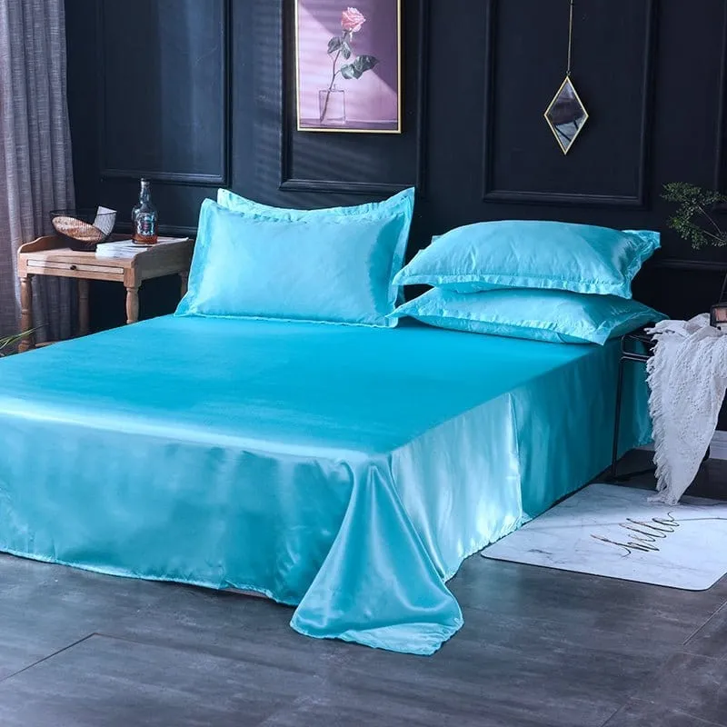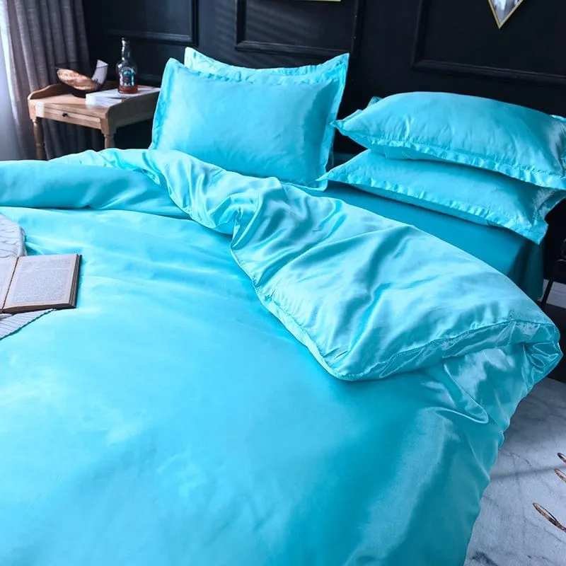 Bleu turquoise type satin – Drap housse / Housse de couette / 2 taies d’oreiller